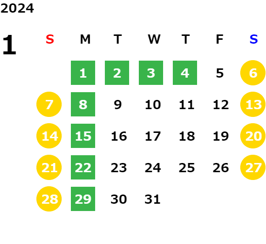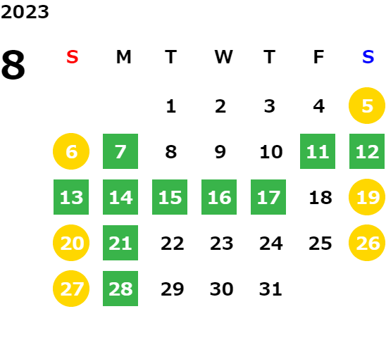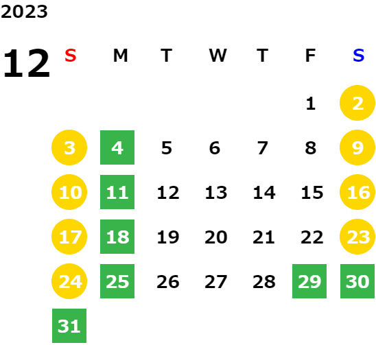 営業日カレンダー