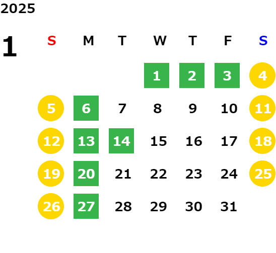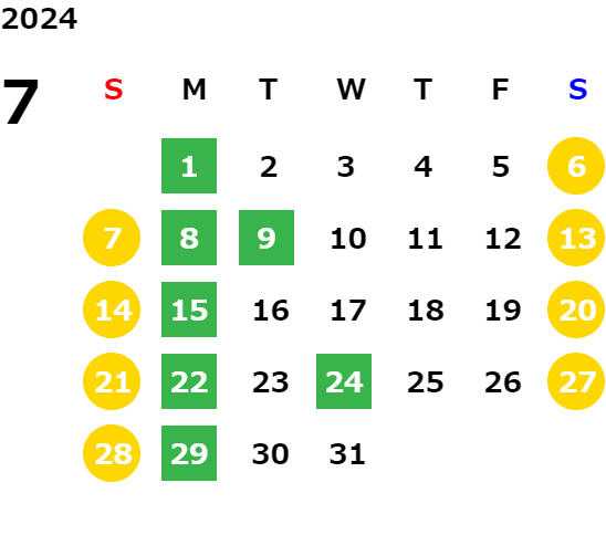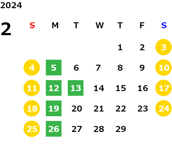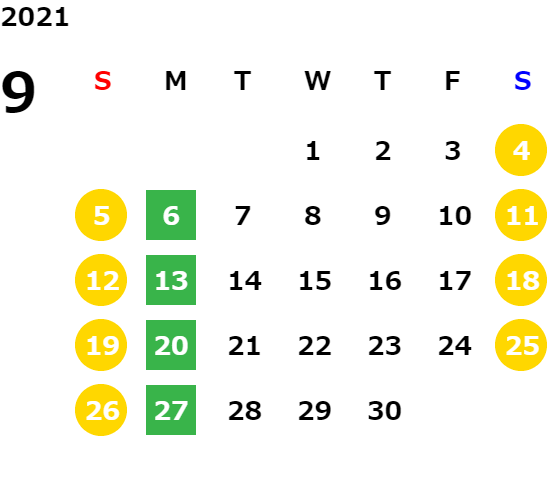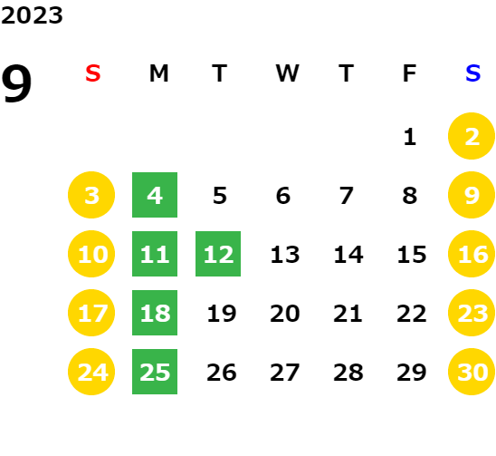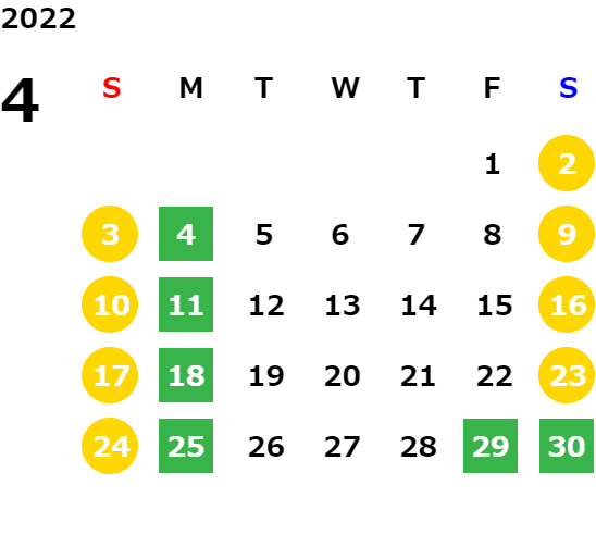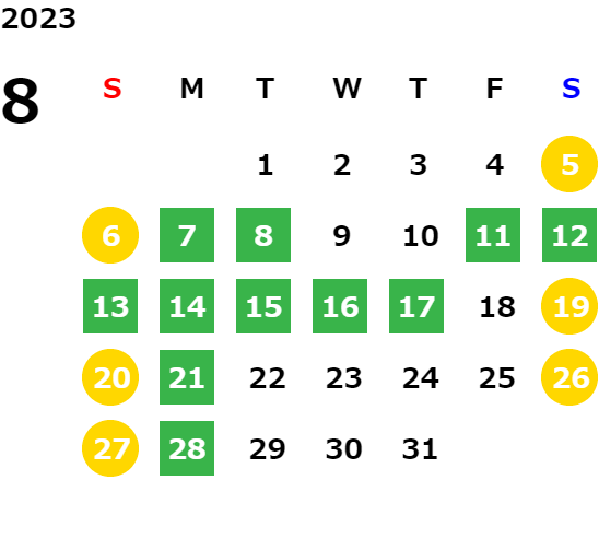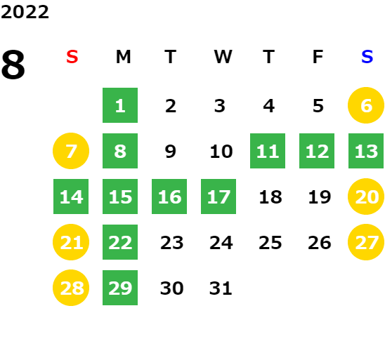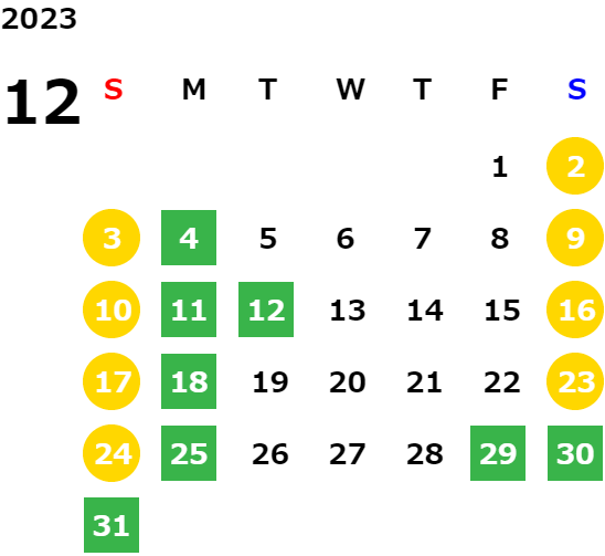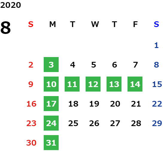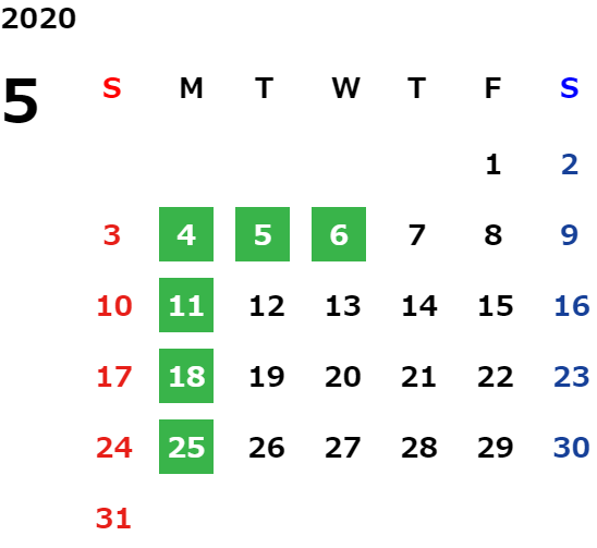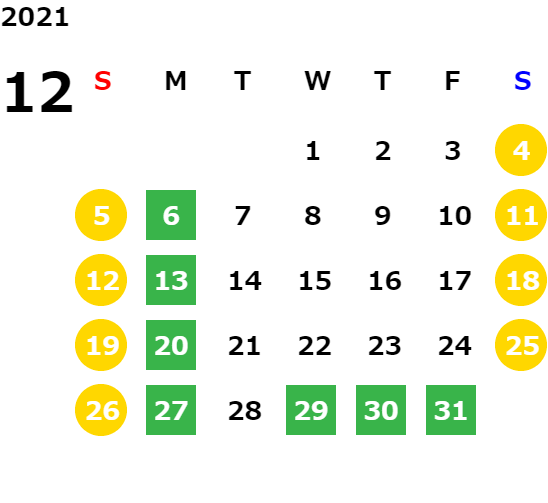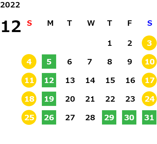 営業日カレンダー