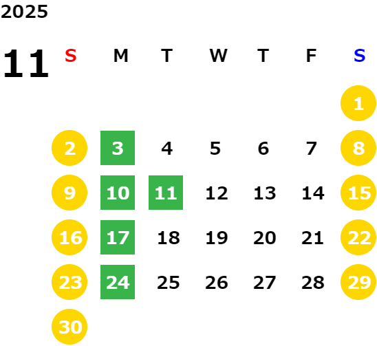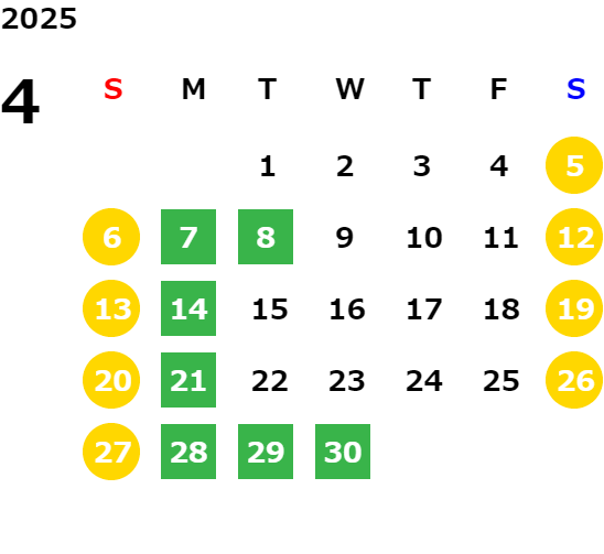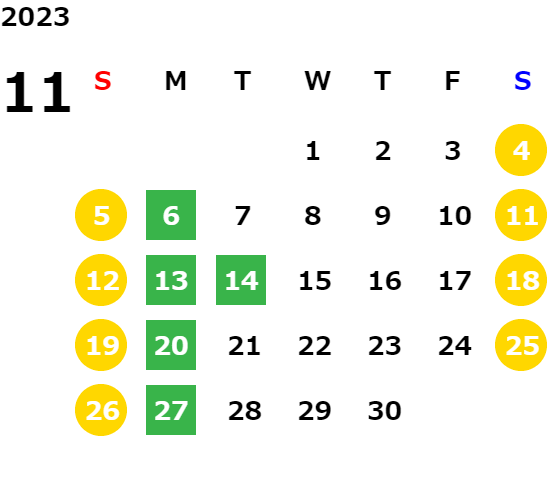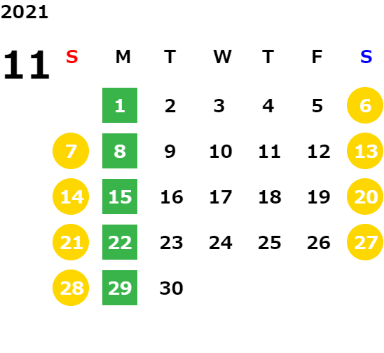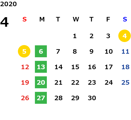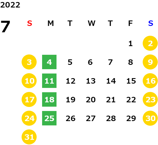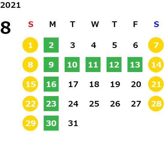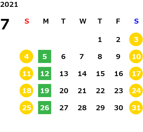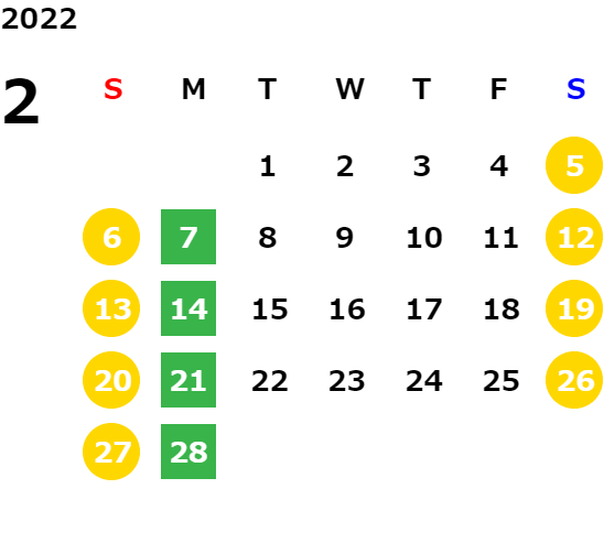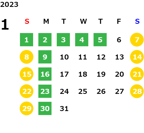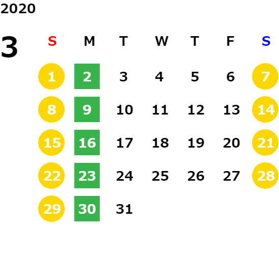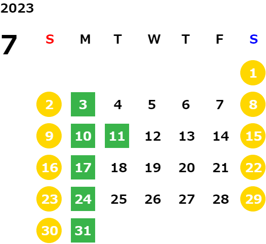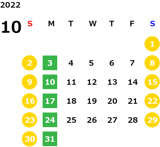 営業日カレンダー